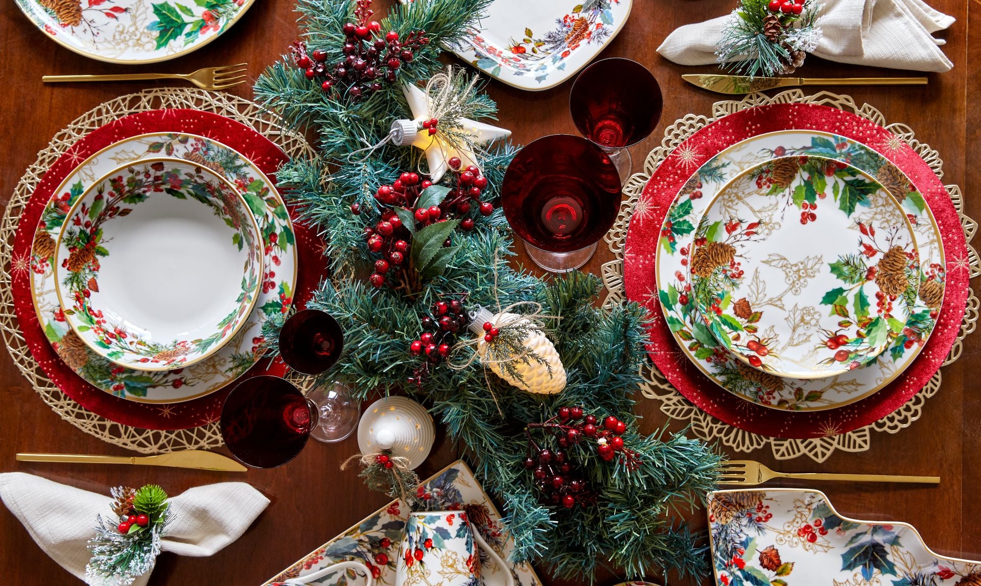Fade - Agrifoglio servizio di piatti natalizio tavola 18 pezzi