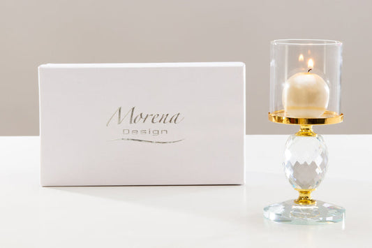 Emò - Candeliere piccolo con paralume cilindrico in vetro luxor