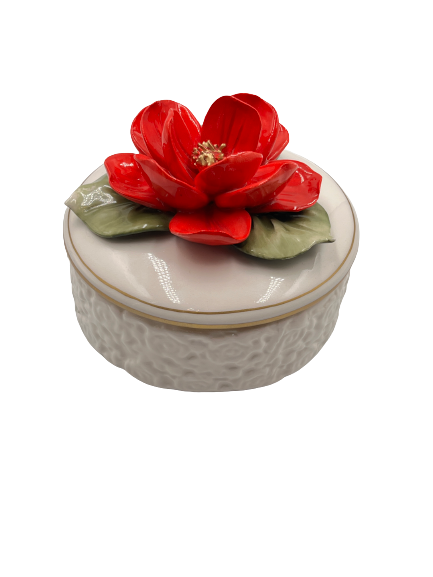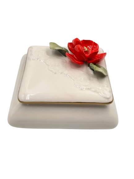 Dea Capodimonte - Scatola quadrata con camelia rossa 15X15XH5CM