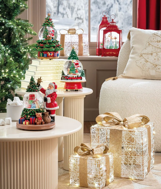 L'Oca Nera - palla di neve babbo natale con stella con carillon