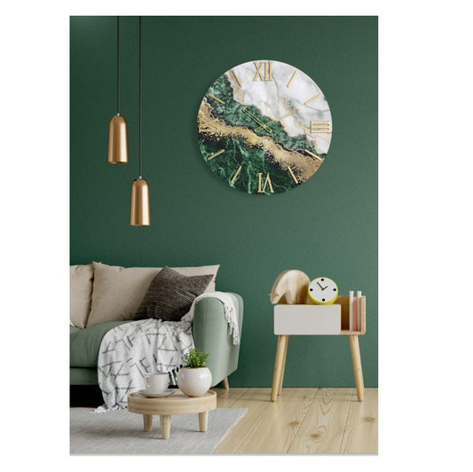 Artemania - Orologio Tondo Marmorizzato Verde e Bianco Ø80