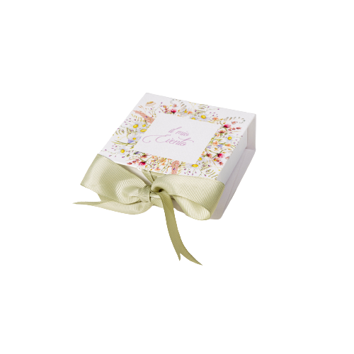 Buy Quick - scatola con ribalta fiocco verde 8x8x3,5cm