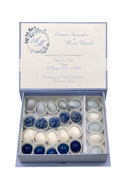H.L. - Scatola cofanetto semirigido con decoro fiori blu e iniziali