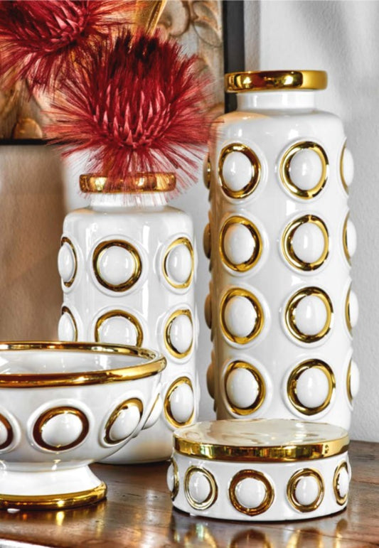 Hervit - Vaso in Gres bianco e oro matt - 70 cm