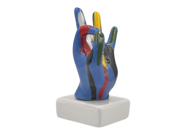Statua della linea “Le Mani Imbratto” Amagè, realizzata in ceramica di Capodimonte. Disponibili nelle variante blu con imbratto, su base bianca in porcellana lucida. Nuova tendenza dell’home design o idea regalo per il tuo evento.