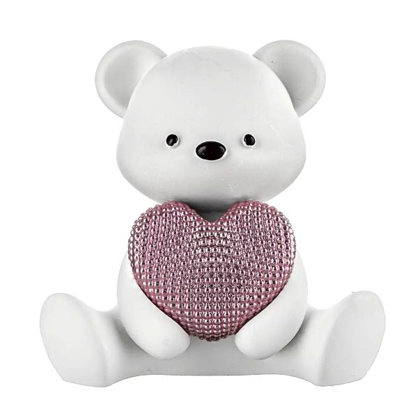 Dolce orsetto in marmorino nel colore bianco e rosa della linea Bongelli Preziosi, H10 cm. Perfetta come idea bomboniera.