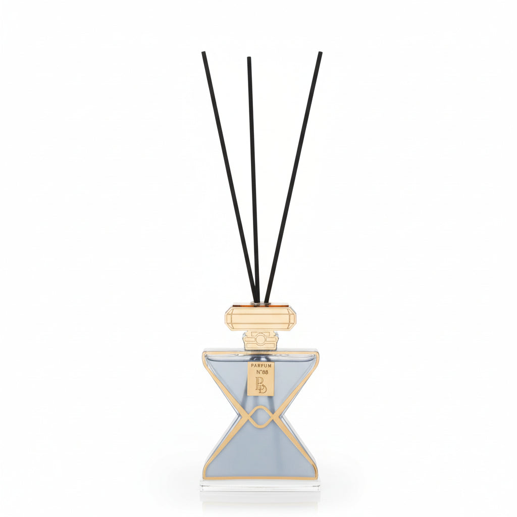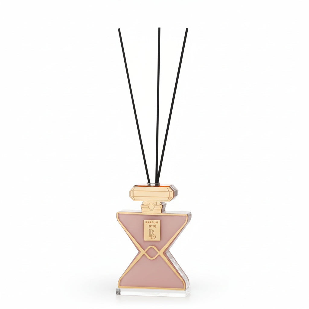 Profumatore della linea Indra di Buba design in plexiglass disponibile in diverse colorazioni con dettagli oro e spargi profumo neri, 9,5x14,5x3cm. Completo di scatola firmata e confezione.