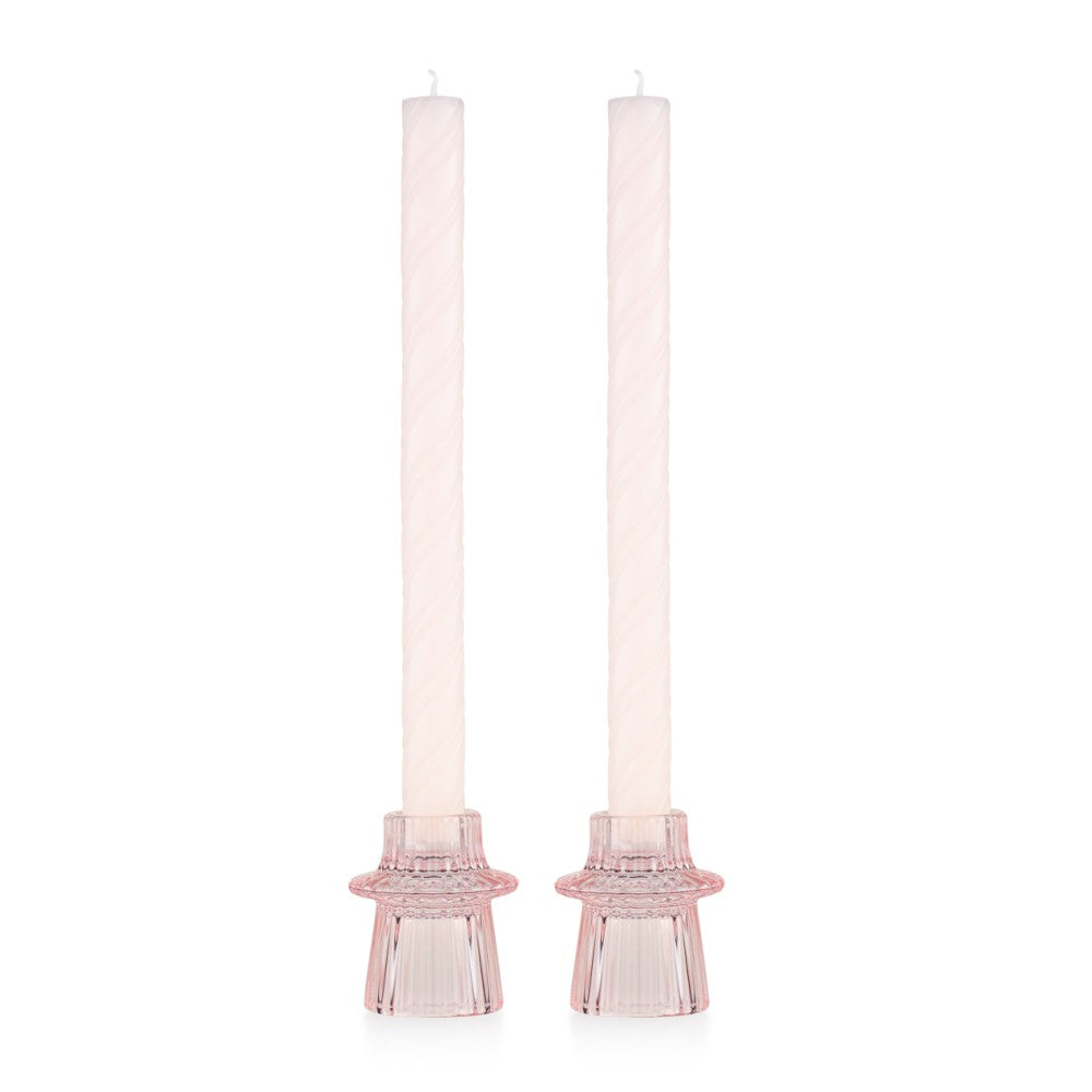 Raffinati e versatili il set di candelieri in vetro della linea Essence sono l'accessorio ideale per decorare la casa o la tavola con un tocco di eleganza. La loro lavorazione striata e la base ampia e stabile li rendono un pezzo di design senza tempo. Misura candela: diam.2,2x26h; misura candeliere: diam.6x7h.