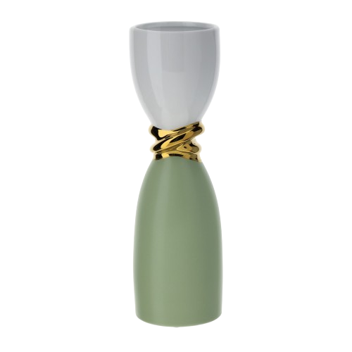 L'elegante e raffinato vaso in porcellana dal doppio colore, bianco e verde con dettaglio in oro decorerà con stile ed eleganza la vostra casa che sia classica o moderna. Ideale anche come regalo.