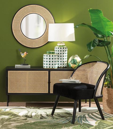 Lampada da tavolo in porcellana con paralume in tessuto. Una fantasia geometrica e preziosi dettagli dorati per un punto luce che cattura lo sguardo. Perfetta da abbinare alla giara d'ispirazione Ethno Chic con la stessa fantasia per un elegante angolo di design. Misure: Ø35x63h